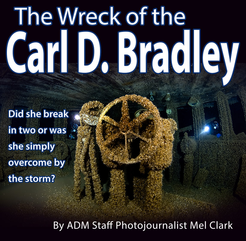 During the investigations after the sinking, the insurance company and ship owners claimed the ship was simply overcome by the storm and did not break up in an attempt to limit their liability. Other theories are the Carl Bradley had split in two due to her weakened structure on the surface and then sunk. This theory is supported by watchman Frank Mays eyewitness accounts of the sinking and has been the accepted theory for over 51 years. Some articles even say 90 feet of the bottom separate the two sections. Armed with this information, my CCR and a dive-x scooter I was ready to prove or disprove this theory.