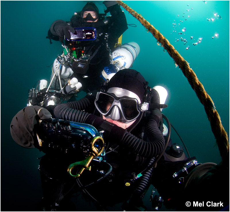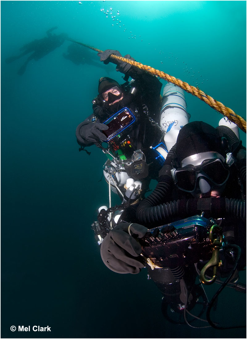 Above: Divers line up on the decompression line awaiting the 3 to 4 hours to safely return to the surface. A small price to pay to visit a once in a lifetime shipwreck.