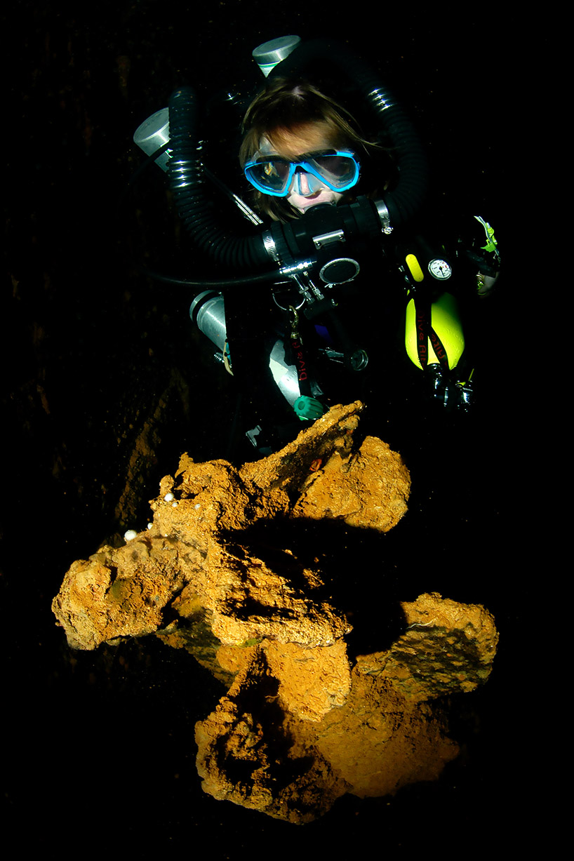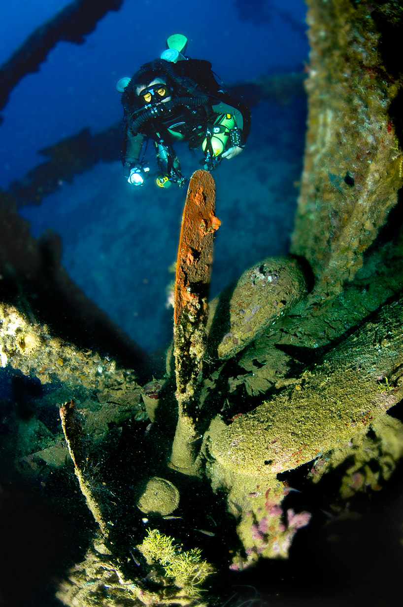 Above: CCR diver Amy Ferguson examines the prop of a 25-foot
