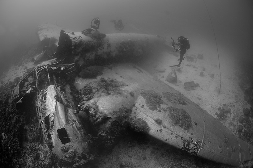 Above: Japanese torpedo bomber “Jill” sits in 120 feet just off Eten Island