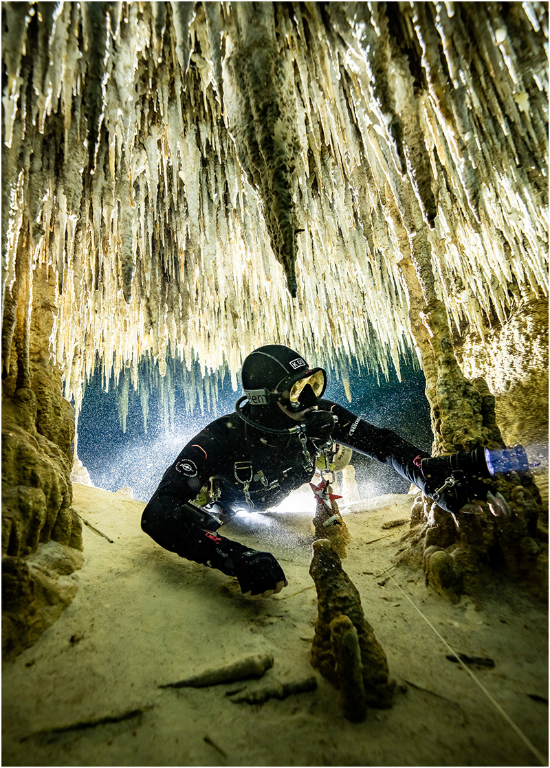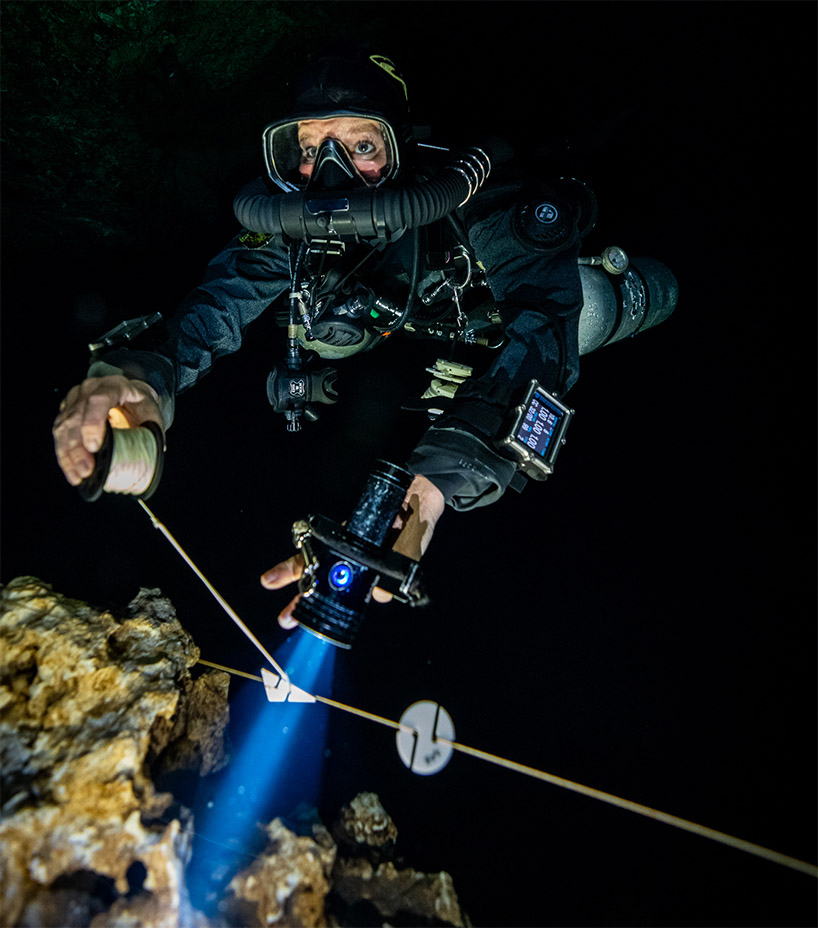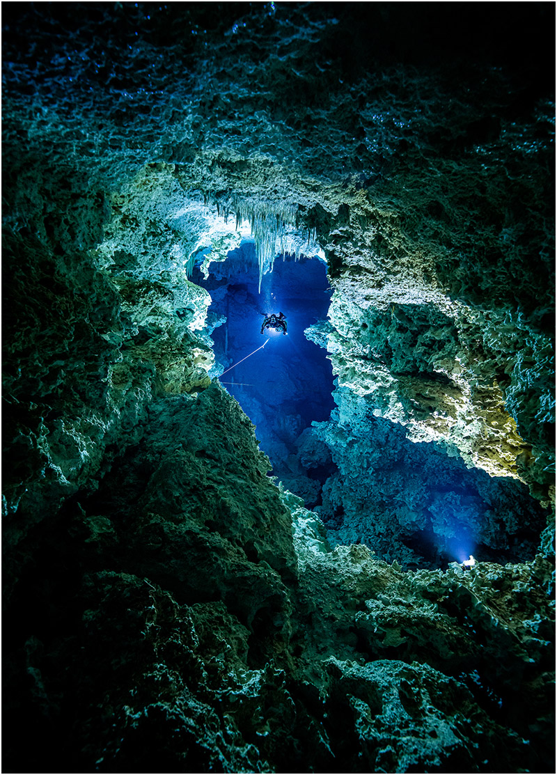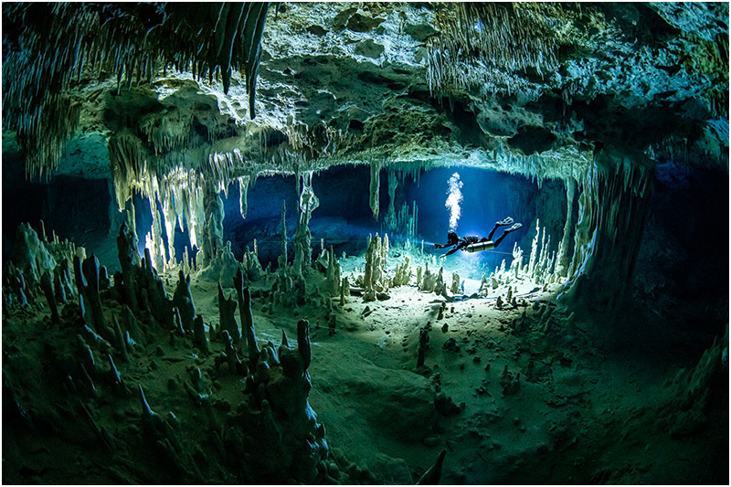 Bottom of Page: Cave Corazon del Paraiso, first dive after a few months break, got this beautiful portrait of a diver on CCR.
