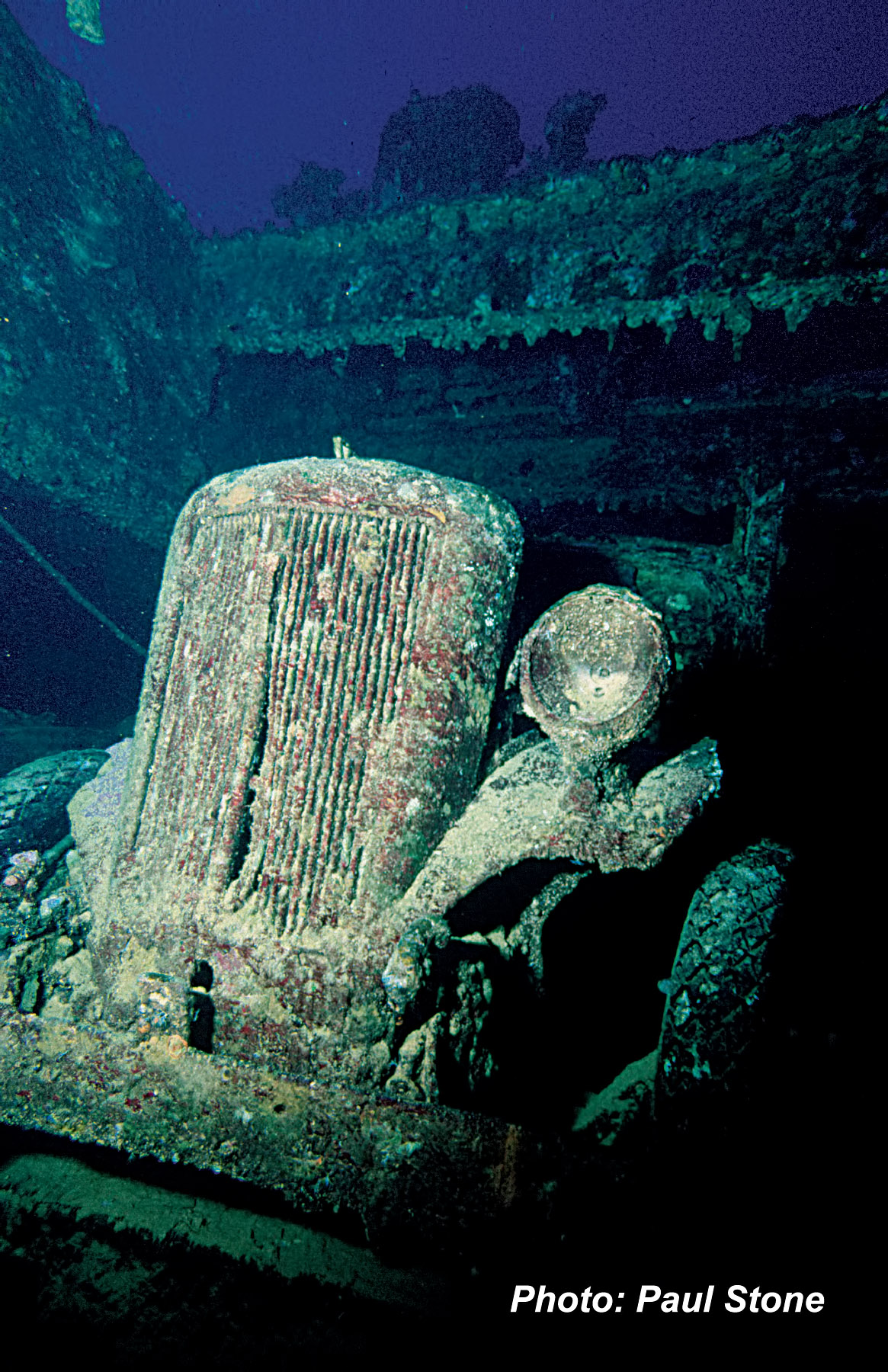 Below: Still locked to the decking this military transport vehicle is still fully loaded.