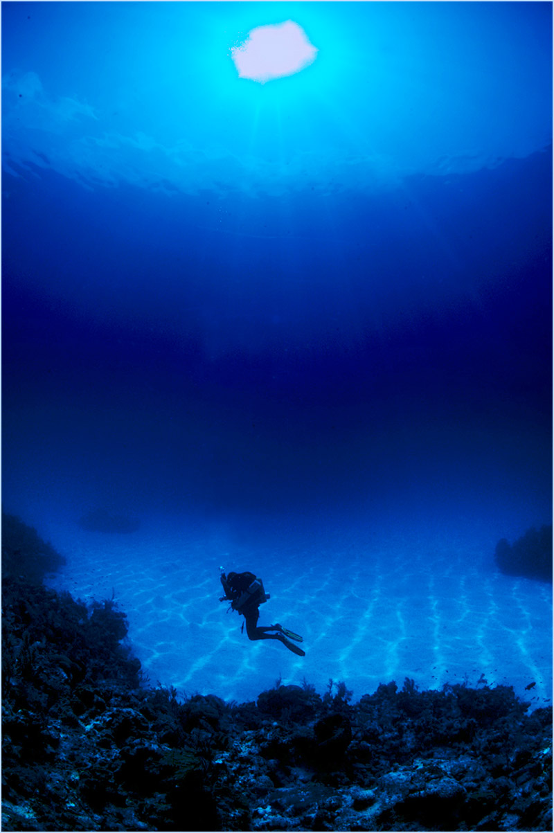 Don’t forget to look up. The view from below is breathtaking as the sun’s rays penetrate the surface, creating enchanting circles of light, visible from 300 feet below the surface. Your ascent will be nothing short of sensational, as you continue to observe the plethora of marine life forms that busily sail past virtually endlessly. Sights such as the Hawksbill turtles are certain to elicit a smile, owing to their characteristic behavior of slowing down to attentively acknowledging your presence. And the continuous kaleidoscope of sponges and coral colors that dress nearly every inch of seabed will leave you in wonderment of this peaceful, vibrant, underwater, art-museum.