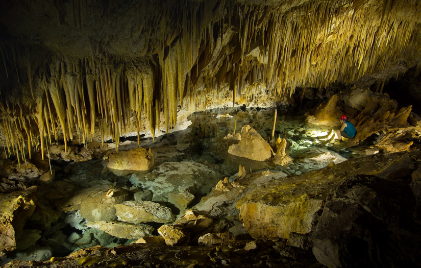 Below Photo: Many cave pools on Christmas Island are floored with huge boulders clearly illustrating the collapse origin of these caves.