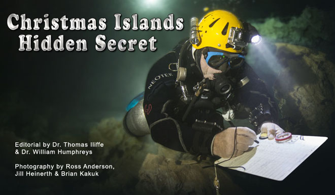 Title Photo Above: Brian takes survey notes while mapping a submerged cave on Christmas Island.