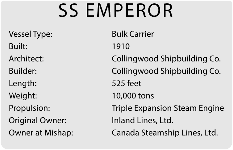 Two crew were lost for the voyage, too far gone to walk to the dock. Walkinshaw had not cared to delay. At 10:55 p.m., the Emperor gave two short blasts on her whistle, answered from shore. The lines went, the propeller bit, and she edged away into the night.