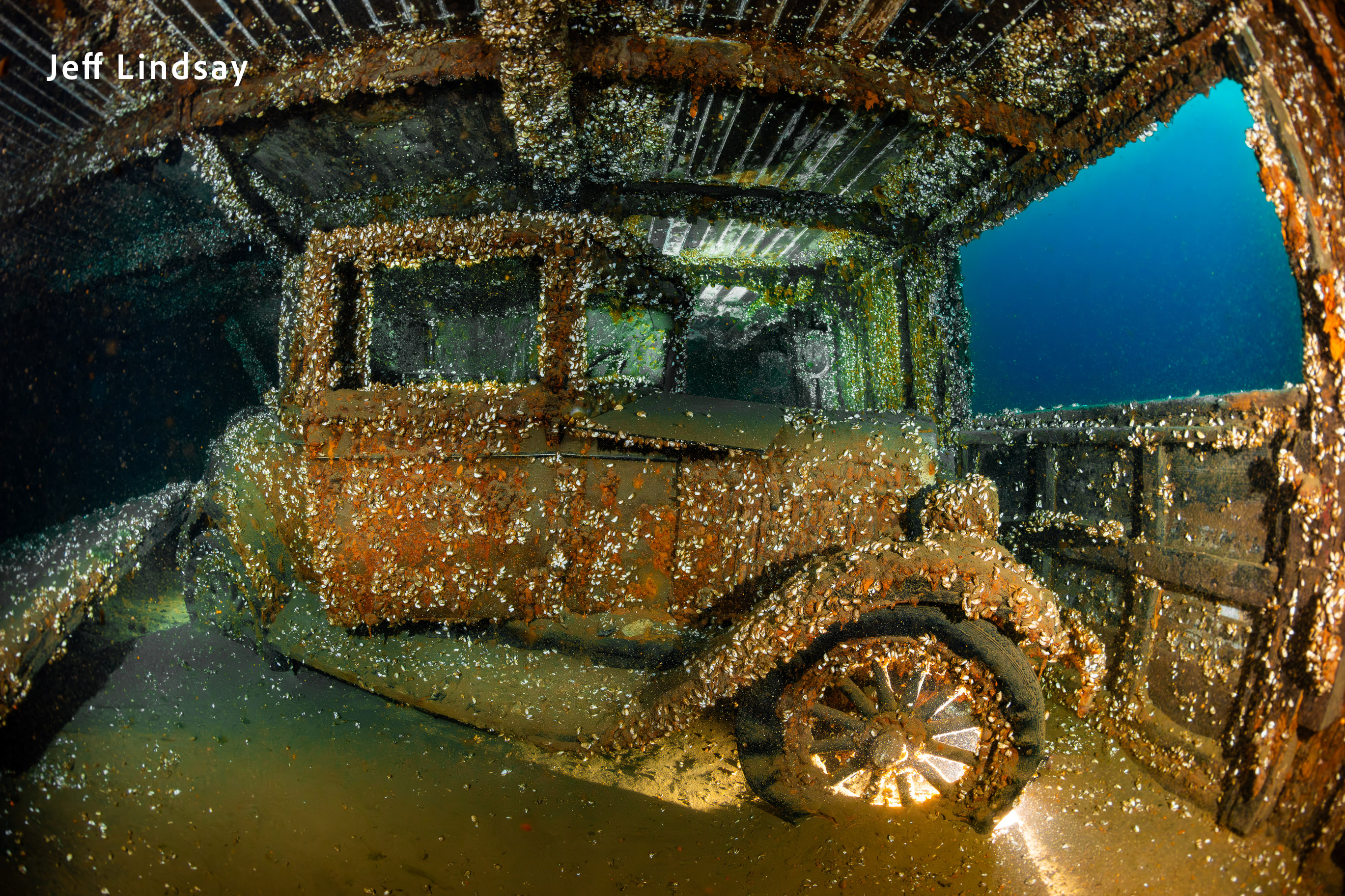 Old car inside SS Manasoo: When I first heard of a shipwreck with a 1927 Chevrolet still inside, it immediately captured my imagination. Photographing it proved to be a delicate challenge—the environment both silty and fragile. Careful planning was essential, and light placement became the key. There was something deeply rewarding about looking through the viewfinder and seeing the plan come to life before me.