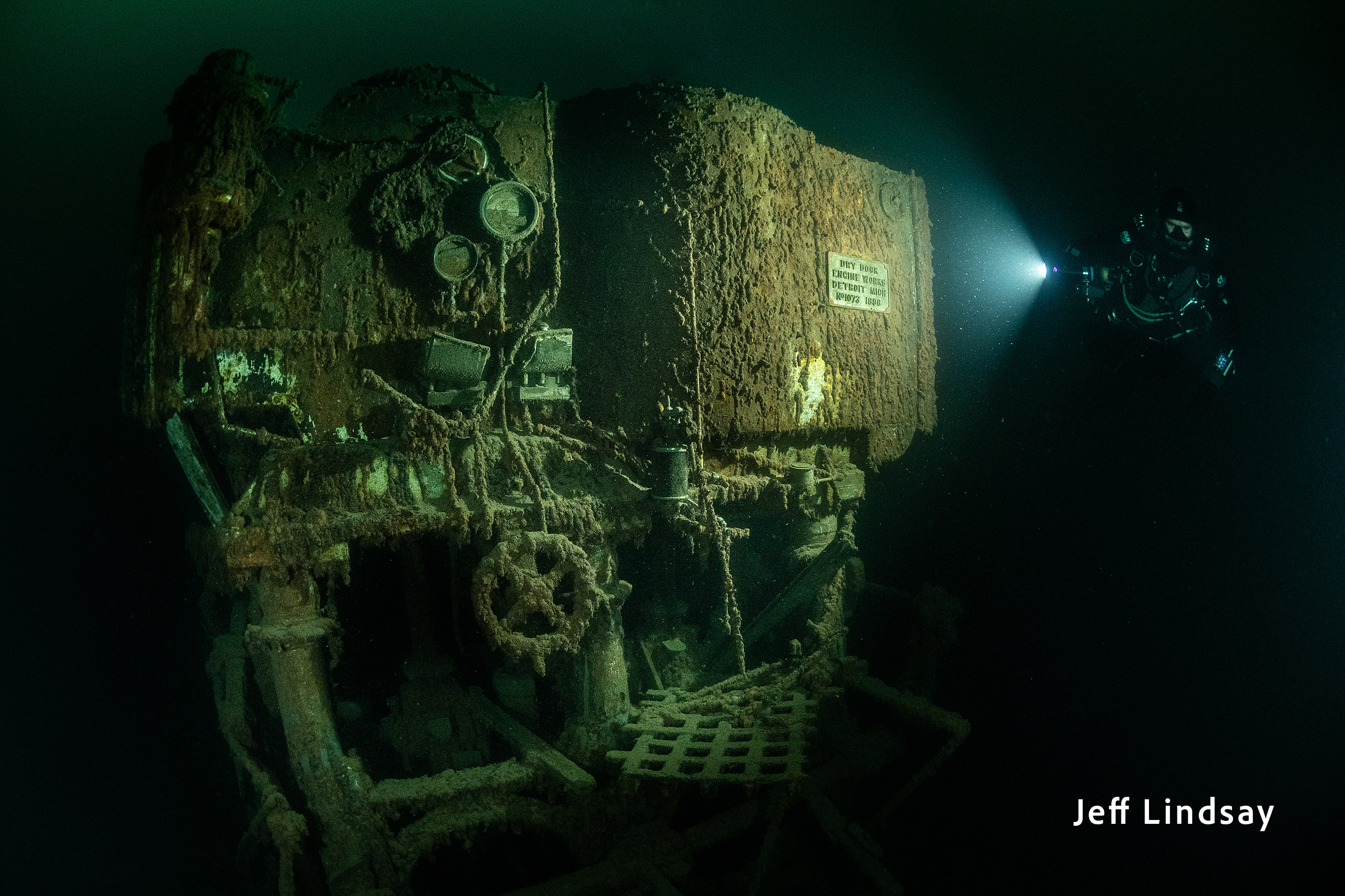 Picture a steamship crossed with a schooner, and you’ll begin to imagine the Mather’s unique character. Her split bow draws you in, and once below the surface, the wreck unveils a feast of detail: engine and boiler rooms, the massive propeller, and standing masts still rigged as if waiting for a breeze.
