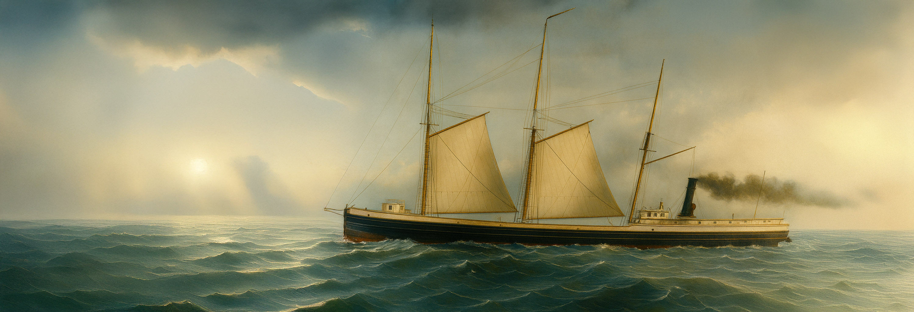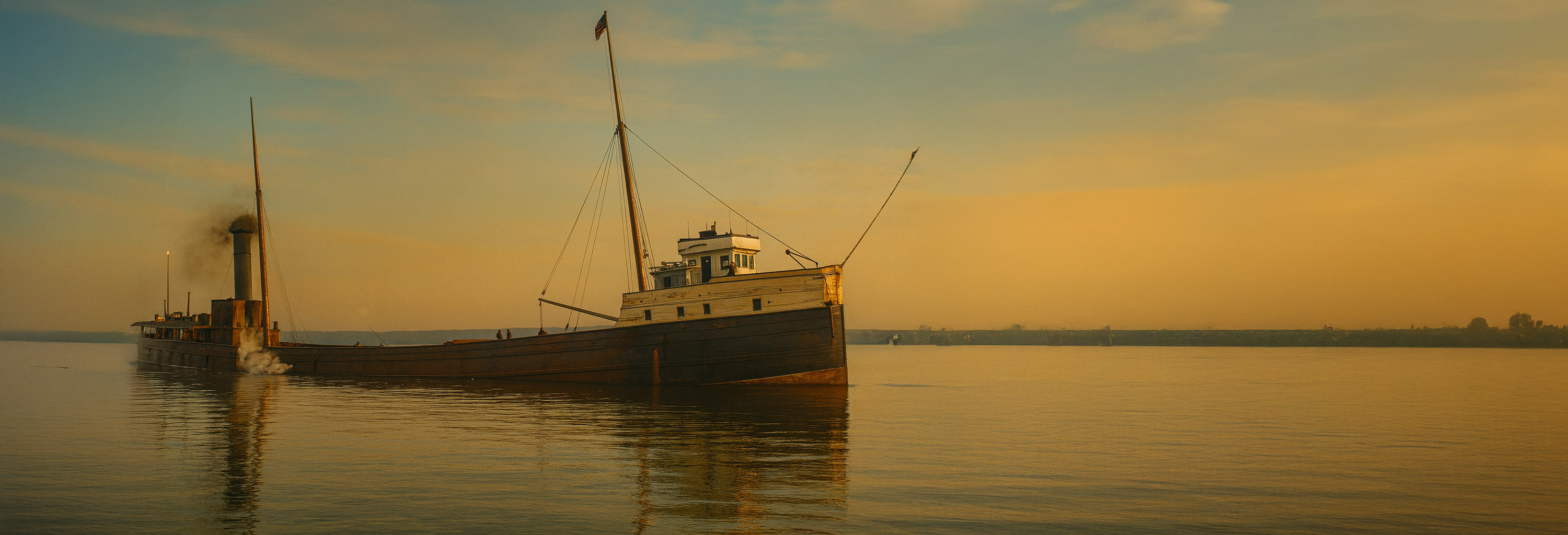 The SS Manasoo—born the Macassa in 1888 at Port Glasgow, Scotland—was a steel-hulled Canadian passenger and package freighter built for the Hamilton Steamboat Company. Luxuriously appointed with carved hardwood, velvet furnishings, and electric lighting, she carried thousands between Hamilton and Toronto before being lengthened in 1905 and later sold to the Owen Sound Transportation Company. Rebuilt and renamed Manasoo, she plied the waters between Sault Ste. Marie and Owen Sound. On 14 September 1928, after loading 115 cows, a bull, crew, and passengers at Manitoulin Island, she steamed into a Lake Huron storm. Listing badly off Griffith Island in the early hours of the next day, she rolled and sank within minutes. Only five survived; sixteen perished. Her whereabouts remained a mystery for nearly 90 years until discovered in 2018, resting upright and astonishingly intact in 210 feet of cold, clear water—stern embedded in the lakebed, a preserved time capsule from the golden age of Great Lakes steamers.
