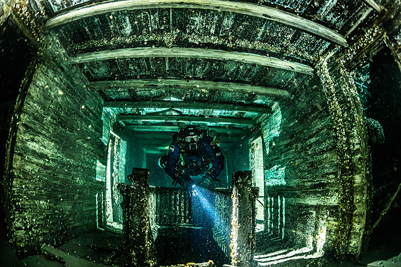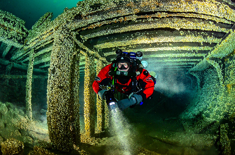 Specializing in deep wreck and cave exploration, Jeff has descended to depths to capturing high-definition stills and 8k cinematic footage that blend precise technical execution with an artist’s eye for light, composition, and storytelling. His work on the Great Lakes reveals astonishingly preserved wrecks—19th-century schooners and steel freighters alike—each documented with meticulous planning and innovative lighting to bring their history vividly to life.