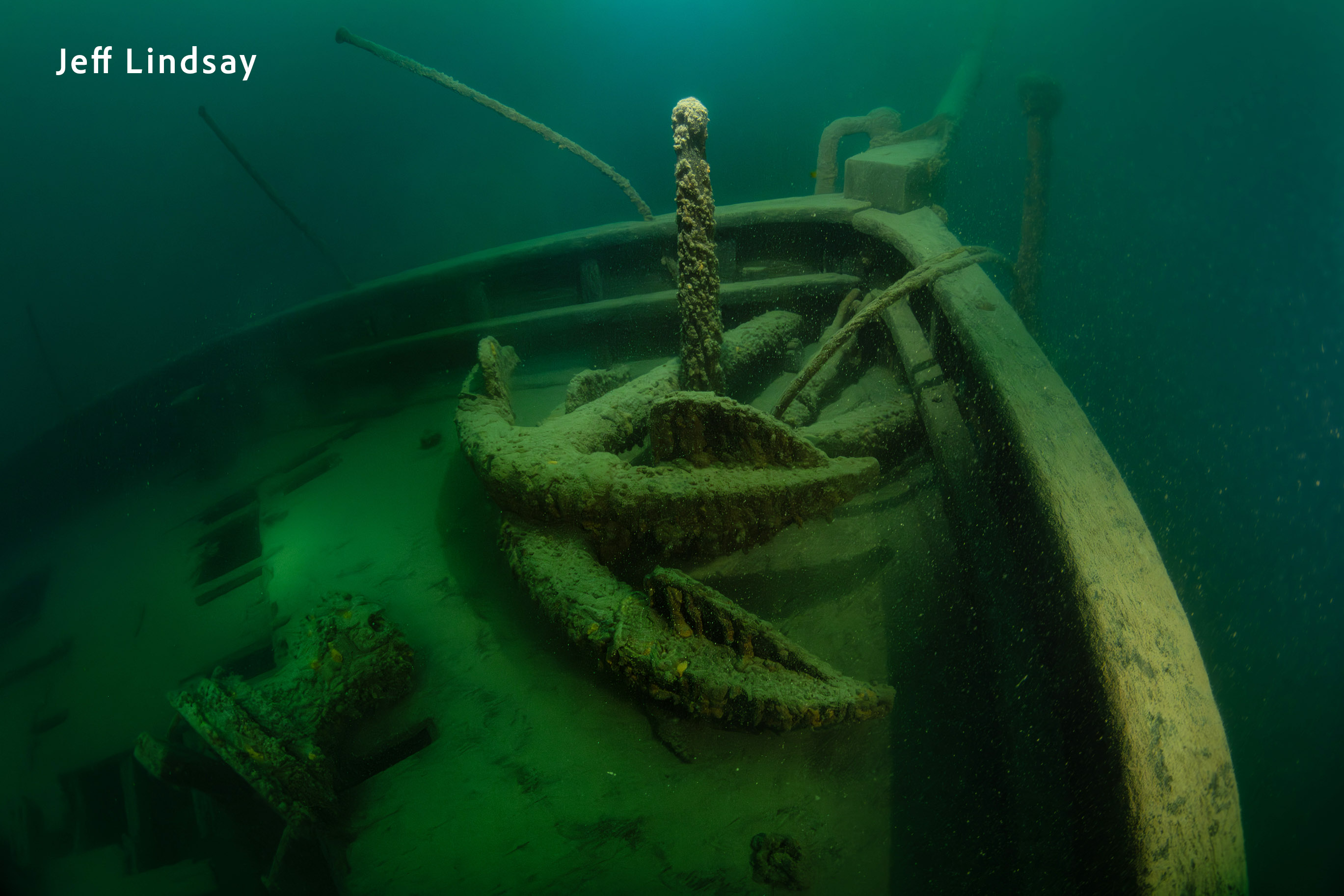 Graceful and inviting, the Kyle Spangler is a schooner that never disappoints. Resting at an approachable depth, she offers divers a perfect gateway into the beauty of Great Lakes wrecks—a glimpse of how intact and evocative these ships can be.