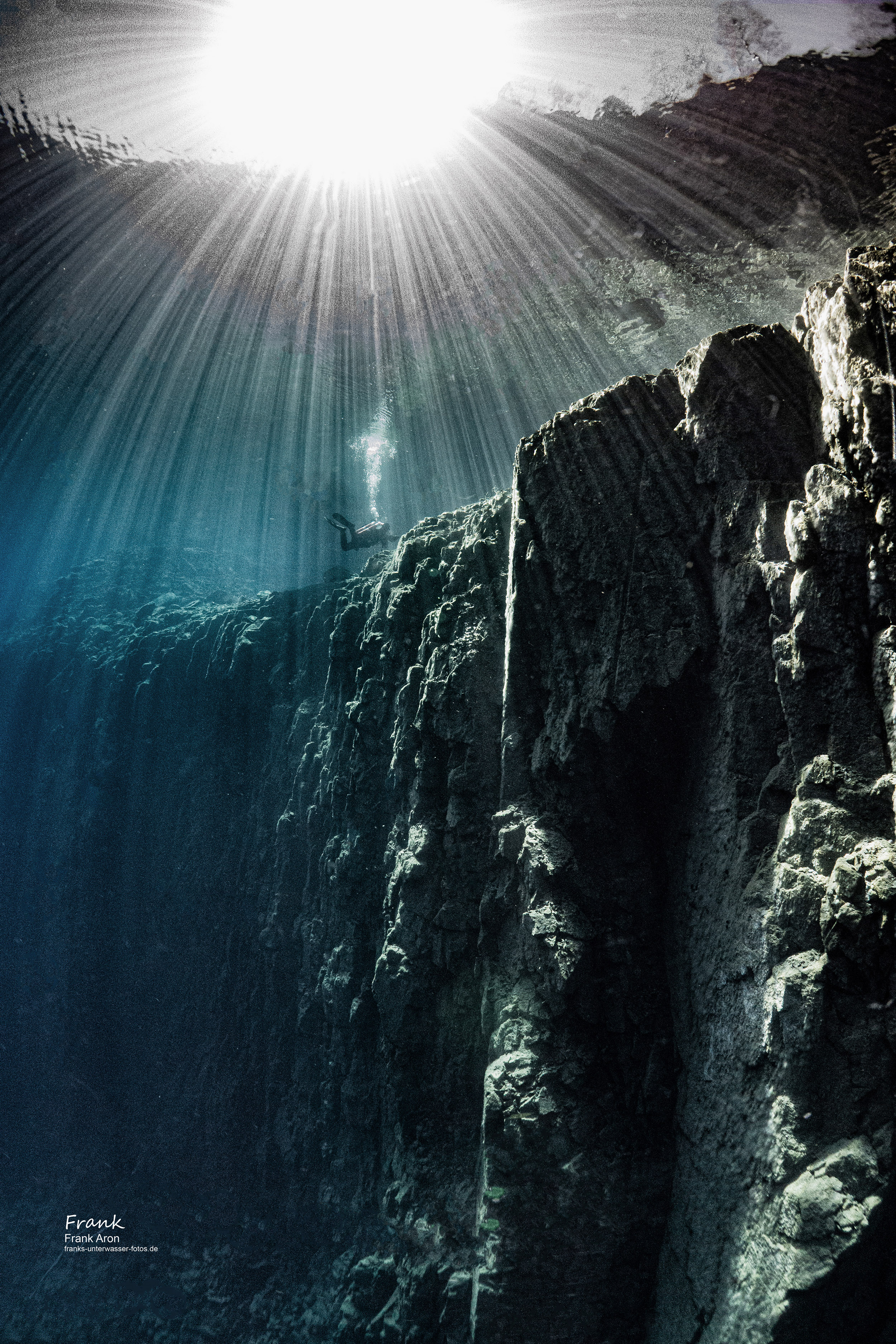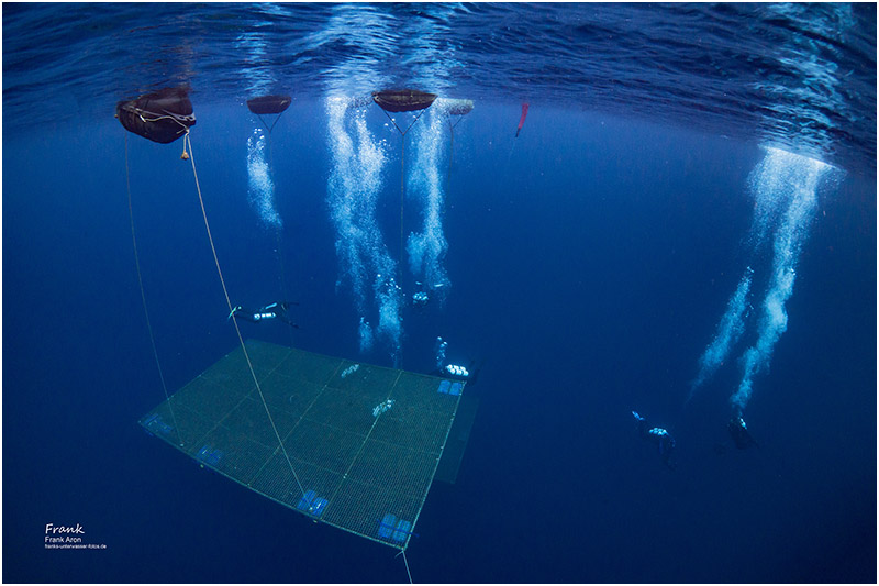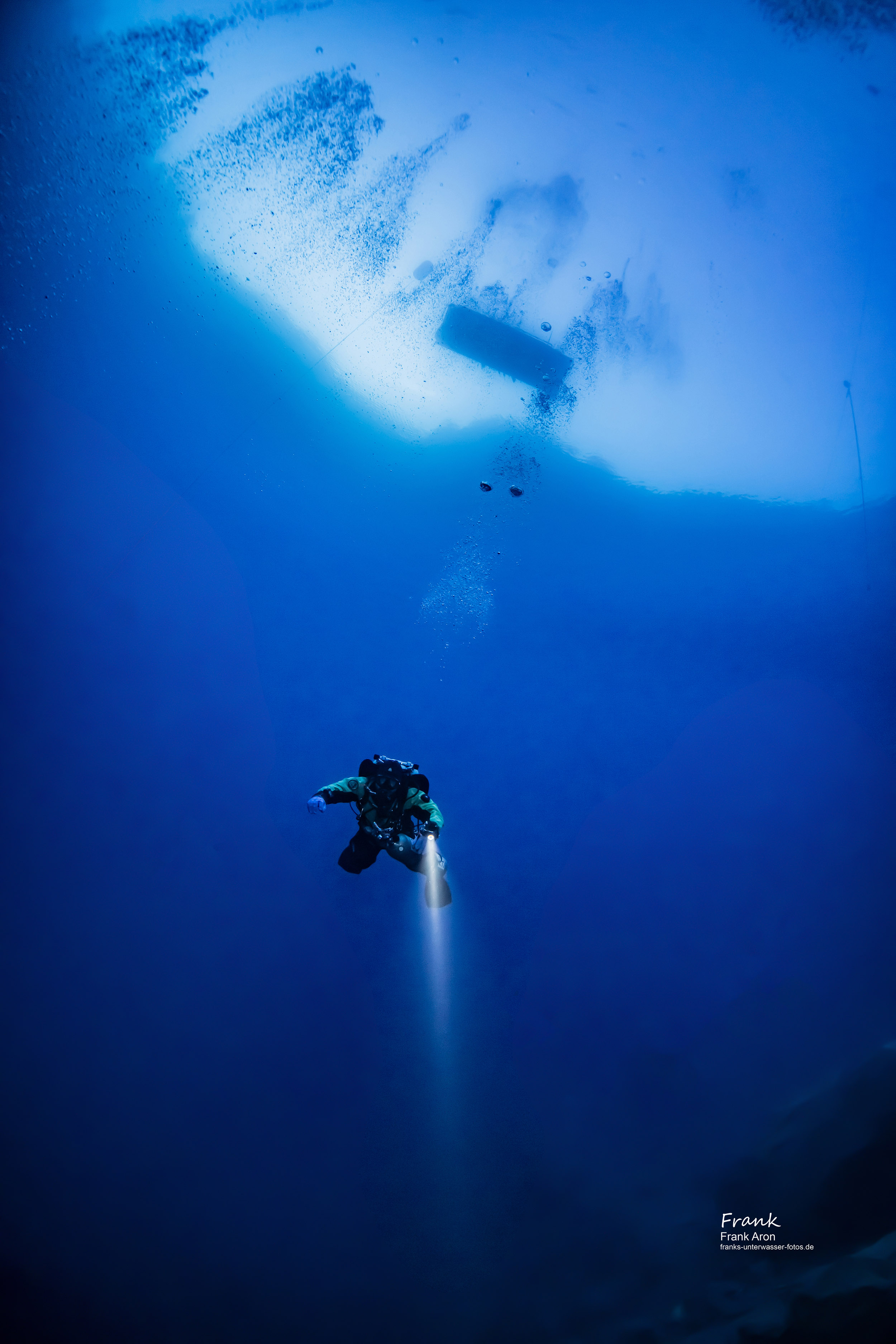 Visibilities in the winter time can easily exceed 100 ft / 30 meters. Once under water, the walls drop sharply to a maximum depth of 130 feet / 40 meters. Divers feel like being in the blue Caribbean sea, the only difference is the water temperature is only 40 degrees F / 4C. The owners of the quarry have installed large training dive platforms at 20ft / 6m - 30ft / 9m and 90ft /28m.