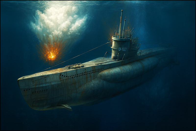 Then came a pattern. Four, maybe five charges. Bracketed. The enemy was using Mark VII depth charges — time-fused, set to descend and detonate sequentially. Designed not to kill with one hit, but to stress the boat into failure.